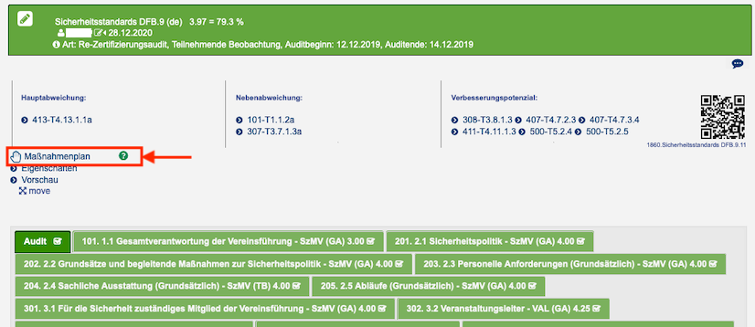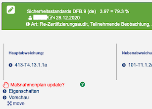 Unter der Voraussetzung, dass Du in deinem Assessment wenigstens eine Abweichung festgestellt hast, bekommst du direkt unter der Liste der Abweichungen den Befehl "Maßnahmenplan" angeboten: