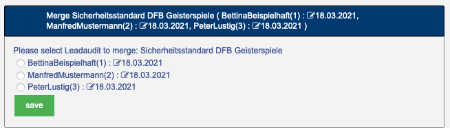 Sofern Ihr Checklistentyp merge unterstützt und sein Wert auf "Ja" gesetzt ist, können alle Checklisten, für die merge = "Ja" zutrifft, zusammengeführt werden: