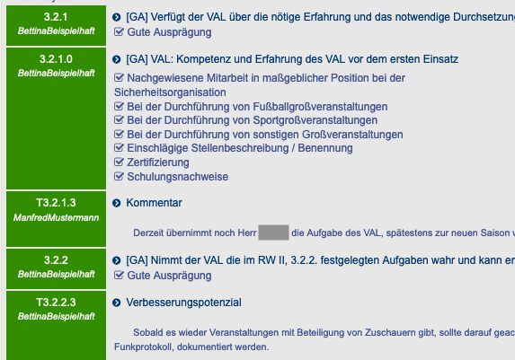- Alle, mittels der "Task"-Funktion (Also im Grundzustand nicht vorhandene Fragen) eingefügten Elemente wie Kommentare, Nachweise etc. werden in die neue Checkliste eingefügt. Dadurch war es erforderlich, die Darstellung aller Fragen um den Autor zu erweitern, um später identifizieren zu können, wer welche Information beigetragen hat. Das bedeutet, alle eingefügten Informationen werden auf jeden Fall übernommen. Nach dem Mergen muss also geprüft werden ob ggf. einzelne Kommentare wieder entfernt werden sollen: