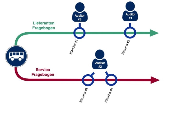 Standorte sind die zu prüfenden Objekte - meist also z.B. Filialen, Niederlassungen, Werkstätten oder sonstige Einrichtungen die besichtigt werden müssen.