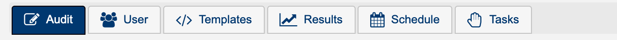 Based on a users role, different tabs allow users to switch between input sections, user-management, template design, evaluation, scheduling and handling of deviations and tasks (if any):