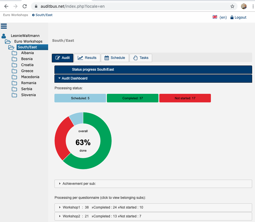 After creation of each team member in auditbus, distribution of tasks, assessments and information becomes really easy. The underlying concept of roles and rights makes sure, everybody can perform his activities and duties.
