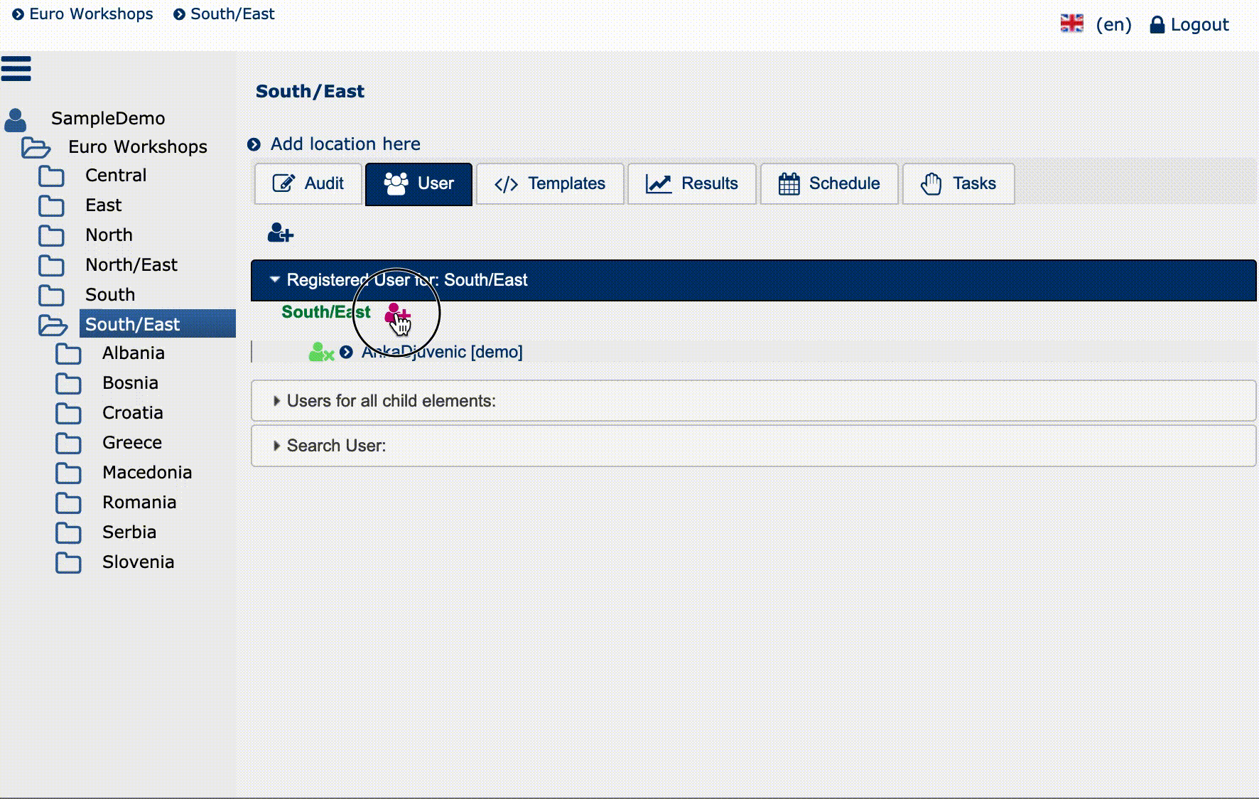 Addition of the layer "South/East" to accissible locations (User has access after next login):